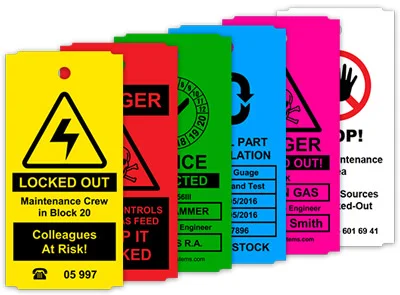 producing ‘customised’, colour coded tags that clearly identify specific risks and give you the capability to customise your Tags to be more effective, more flexible and convey a stronger safety message.